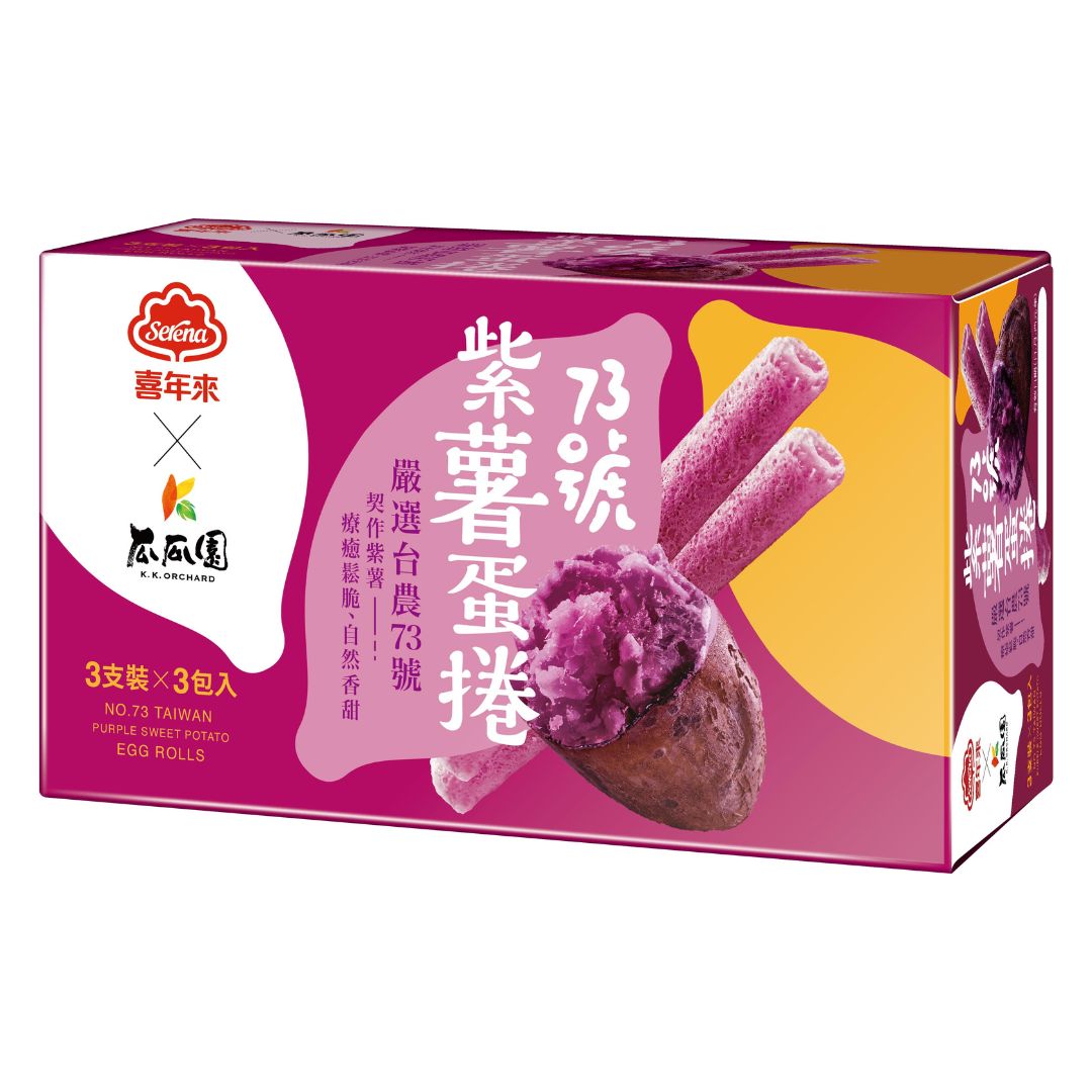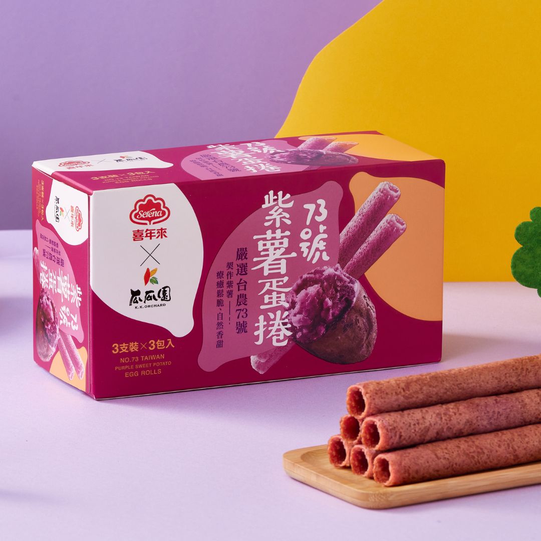雞蛋、植物油(軟質棕油、脂肪酸丙二醇酯、脂肪酸甘油酯)、麵粉、砂糖、紫地瓜粉、紅甜菜粉(紅甜菜濃縮汁、麥芽糊精)、地瓜液體香料、維生素C(抗氧化劑)、鳳梨萃取物(鳳梨萃取物、麥芽糊精)