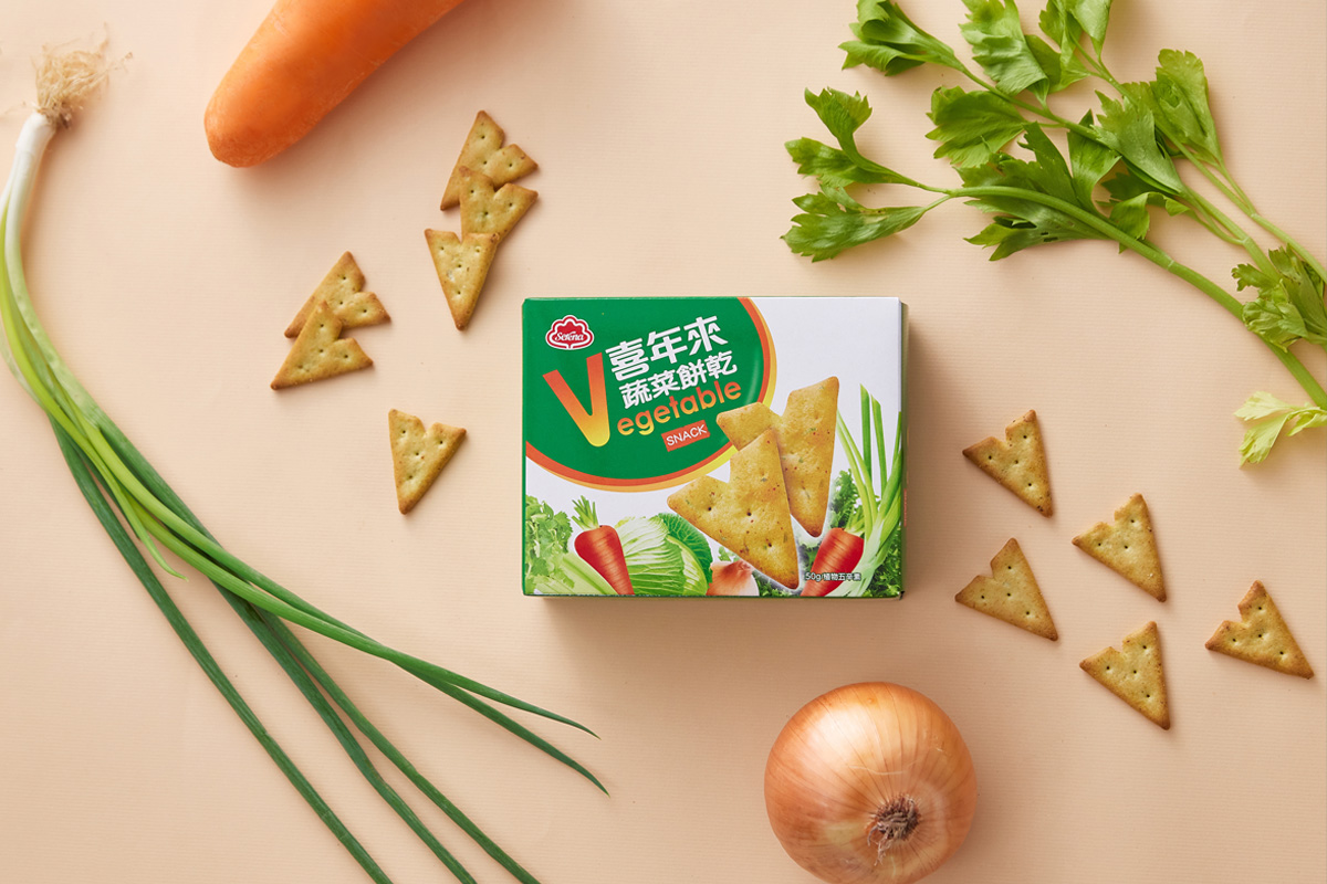 麵粉、椰子油、植物油(軟質棕油、脂肪酸丙二醇酯、脂肪酸甘油酯)、砂糖、膨脹劑(碳酸氫銨)、芹菜、胡蘿蔔、甘藍菜粉(甘藍菜、葡萄糖)、精鹽、偏亞硫酸氫鈉、洋蔥、芝麻醬、珠蔥、麥芽抽出物、L-麩酸鈉、β-胡蘿蔔素(葵花油、β-胡蘿蔔素)、鳳梨萃取物(鳳梨萃取物、麥芽糊精)。