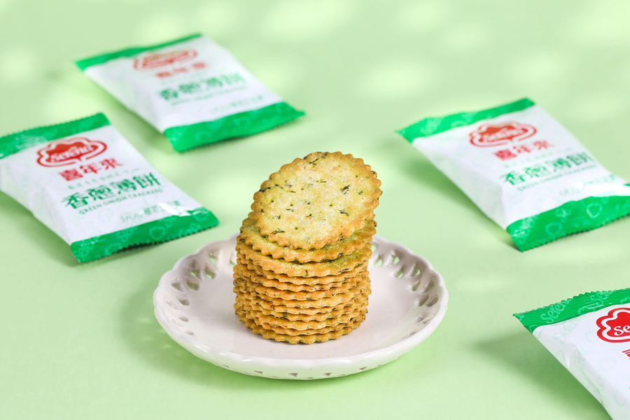 麵粉、椰子油、砂糖、植物油(軟質棕油、脂肪酸丙二醇酯、脂肪酸甘油酯)、無水奶油、青蔥、膨脹劑(碳酸氫銨、小蘇打)、全脂奶粉、偏亞硫酸氫鈉、麥芽抽出物、精鹽、菠菜、黑胡椒粉、L-麩酸鈉、β-胡蘿蔔素(葵花油、β-胡蘿蔔素)、鳳梨萃取物(鳳梨萃取物、麥芽糊精)